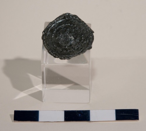Aquila (o altro uccello) stilizzata, con ali spiegate e testa di profilo. Occhio singolo, penne stilizzate sulla testa, e linee oblique per rappresentare le piume delle ali. Inscritta entro cornice perlinata.