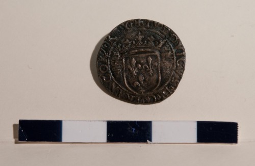 Scudo con i tre gigli del Regno di francia, sormontato da corona. Ai lati due serpenti coronati.