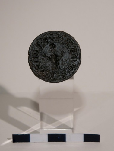 Santo Orante a mani aperte, con ai lati due palmette.