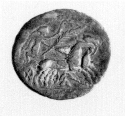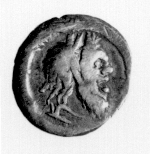 [Dritto] Sileno - Maschera di Sileno a destra; sotto, aratro; torques come bordo[Rovescio] Vittoria in biga - Vittoria in biga verso destra con redini, frusta e palma; sotto, carnyx; esergo, illeggibile