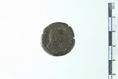 Busto laureato e drappeggiato a d; controno lineare