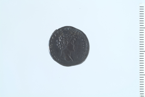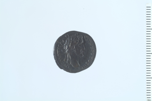 Testa nuda di Antonino Pio a d.; contorno perlinato.