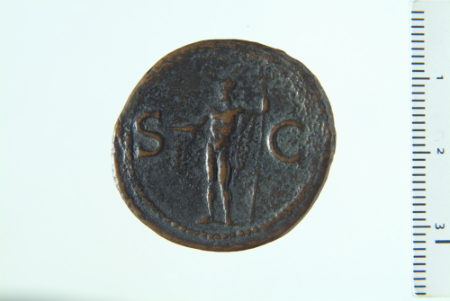 Testa di Agrippa con corona rostrata a s.; contorno perlinato