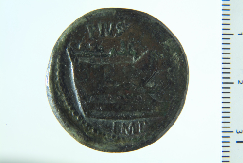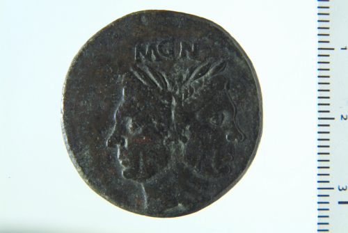 Testa laureata di Giano con le fattezze di Pompeo Magno; contorno perlinato