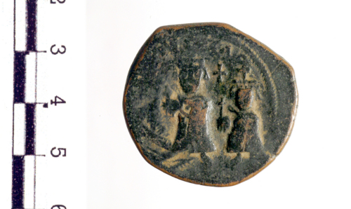 Due imperatori, diademati e stanti in posizione frontale, con asta crucigera