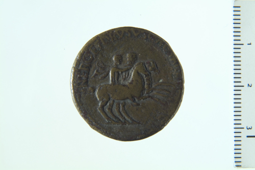 Druso e Nerone cesari su cavalli al galoppo a d.; contorno perlinato
