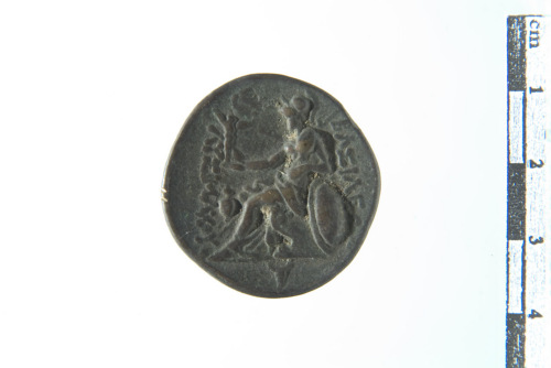 Testa diademata di Alessandro divinizzato a d., controno perlinato