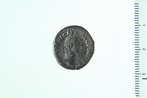 Testa laureata di Nerva a d.; contorno perlinato.
