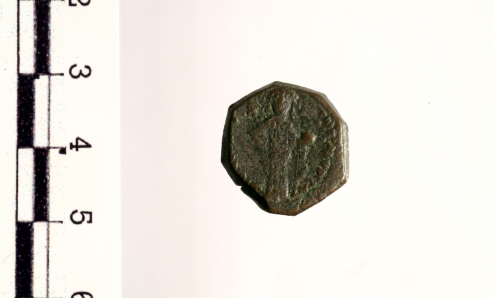 Figura stante e nimbata di Cristo su pedana, con Vangelo nella mano s.