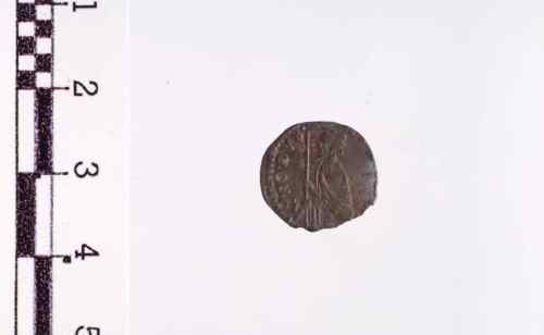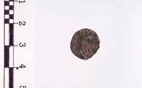 Il Doge con berretto e manto, inginocchiato a s., tiene con ambo le mani il vessillo.