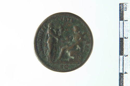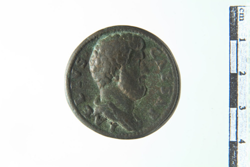 Busto drappeggiato di Elio Cesare a d.; contorno perlinato