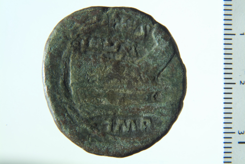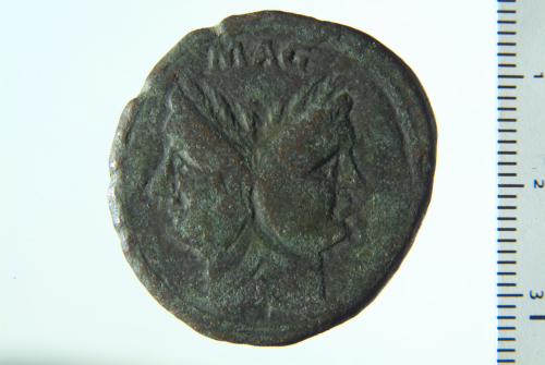 Testa laureata di Giano con le fattezze di Pompeo Magno; contorno lineare