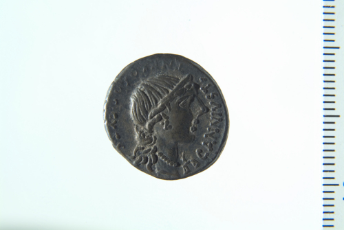 Busto femminile diademato a d., a d. bilancia; contorno perlinato