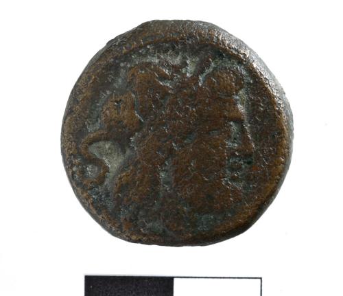 Testa laureata di Saturno a d.