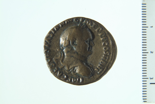 Busto laureato e drappeggiato di Vespasiano a d.; contorno perlinato.