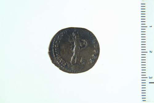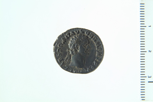 Testa laureata di Domiziano a d.; contorno perlinato.