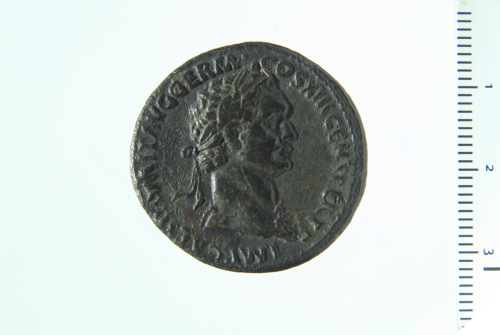 Busto laureato di Domiziano a d., con egida; contorno perlinato.