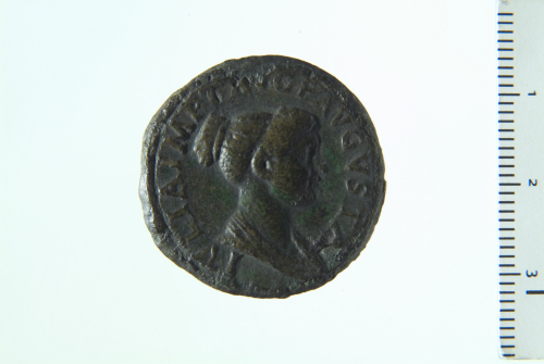 Busto drappeggiato di Giulia a d.; contorno perlinato (?).