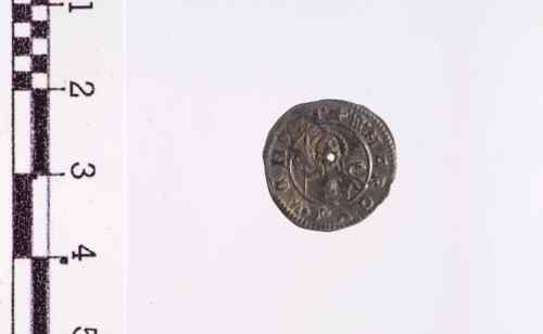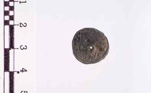 Il Doge inginocchiato a s., tiene con ambo le mani il vessillo.