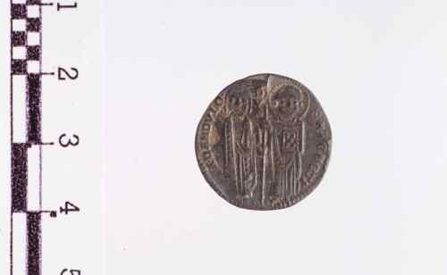 S. Marco, in piedi a d., porge il vessillo al Doge a s., in piedi.