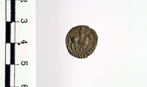 Il Re a cavallo verso d. con frusta; davanti, monogramma