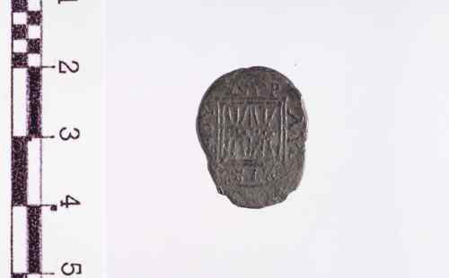 Vacca, stante a d., che allatta un vitello; a s.: statua femminile