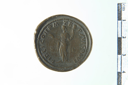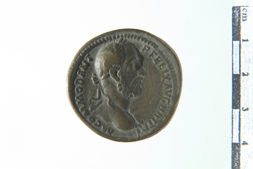 Busto laureato e drappeggiato di Commodo a d.; contorno perlinato