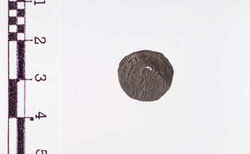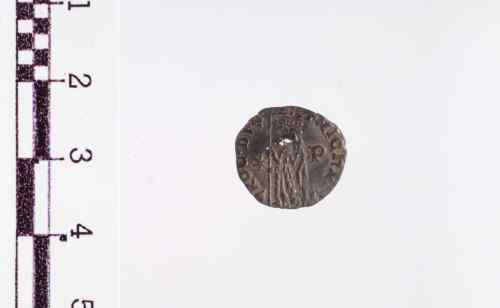 Il Doge, in piedi volto a s., tiene con ambo le mani il vessillo.