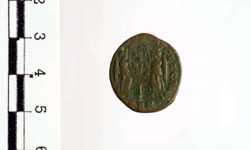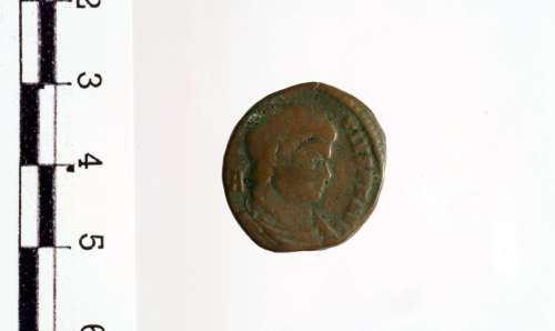 Busto drappeggiato e corazzato di Magnenzio a d. con testa nuda; dietro, A