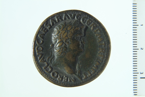 Busto laureato di Nerone a d., con egida; contorno perlinato.