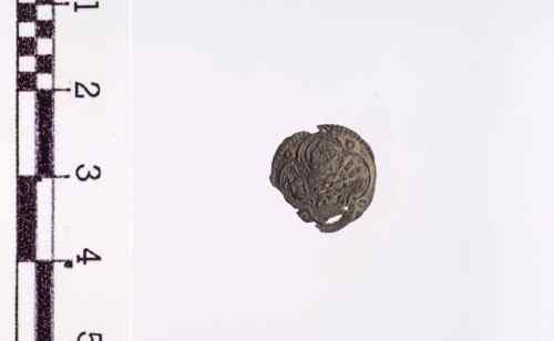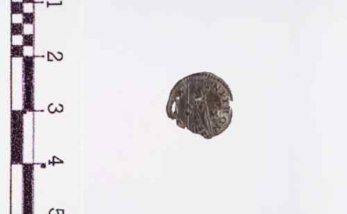 Il Doge con berretto e manto, in piedi a s., tiene con ambo le mani il vessillo, la cui banderuola è volta a d.; senza cerchio.