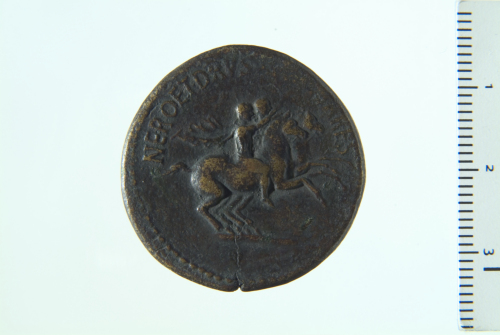 Druso e Nerone cesari su cavalli al galoppo a d.; contorno perlinato