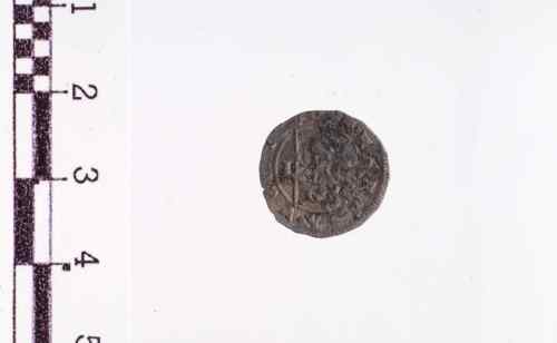Il Doge inginocchiato a s. tiene con ambo le mani il vessillo.