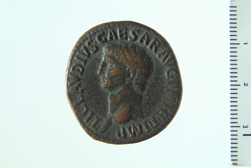 Testa di Claudio a s.; contorno perlinato