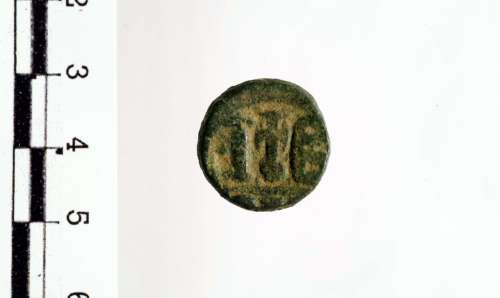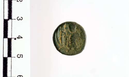 Costante II stante di fronte, con clamide, corona, lunga asta terminante con un cristogramma e un globo crucigero (croce potente)