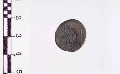 Vacca, stante a d., che allatta un vitello; campo ed esergo illeggibili