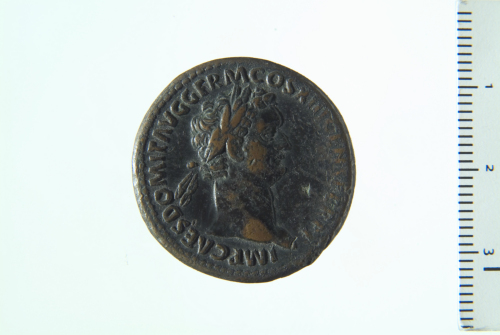 Busto laureato di Domiziano a d.; contorno perlinato.