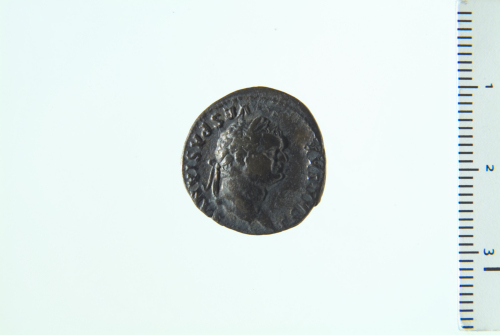 Testa laureata di Tito a d.; contorno perlinato.
