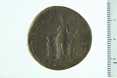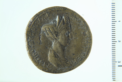 Busto drappeggiato di Matidia a d.; contorno perlinato.
