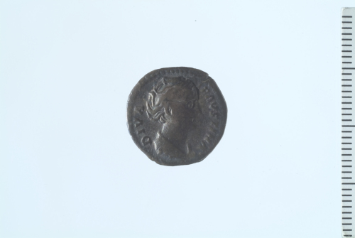 Busto drappeggiato di Diva Faustina a d.; contorno perlinato.