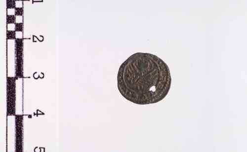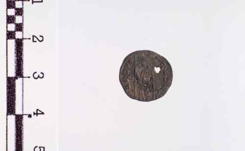 Il Doge con berretto e manto in piedi a s., tiene con ambo le mani il vessillo.