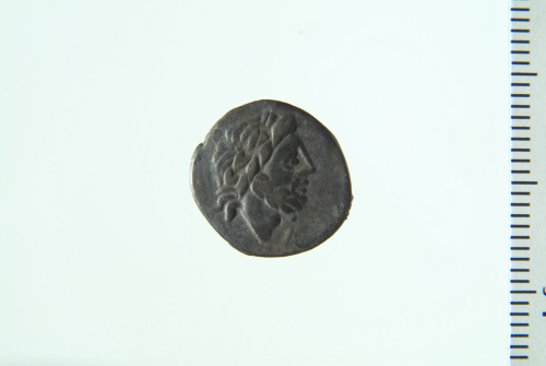Testa laureata di Giove a d.; contorno perlinato