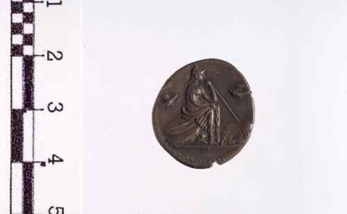 Testa elmata di Roma a d. con elmo corinzio alato e ricciolo sulla spalla s. Cerchio di puntini.