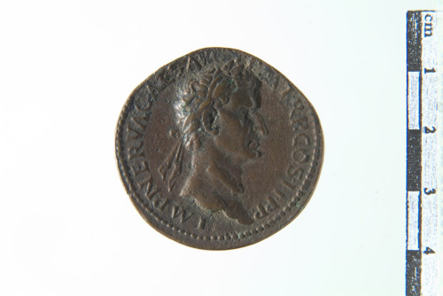 Busto laureato di Nerva a d.; contorno perlinato