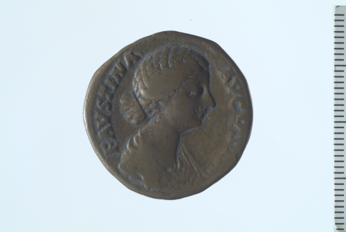 Busto drappeggiato di Faustina II a d.; contorno perlinato.