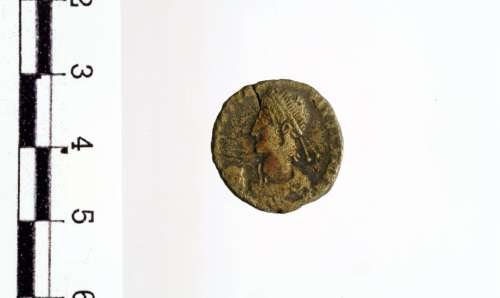 Busto diademato, drappeggiato e corazzato di Costanzo II a s. con globo