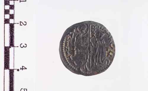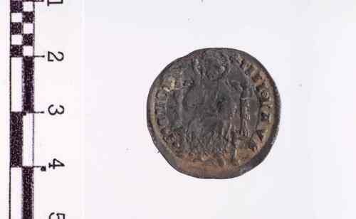 S. Marco, nimbato, in piedi a s., porge il vessillo al Doge genuflesso che lo prende con ambo le mani; la banderuola con croce è volta a d.