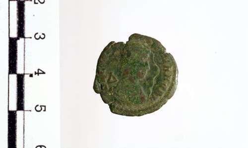 Busto drappeggiato e corazzato di Costanzo Gallo a d. con testa nuda; dietro, lettera delta
