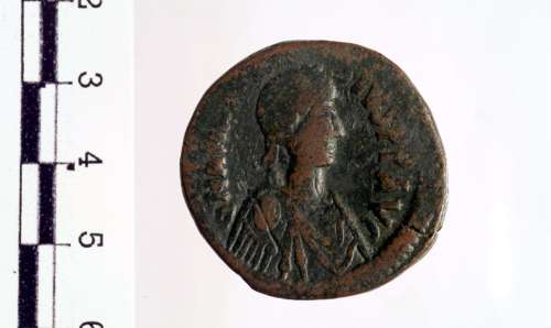 Busto diademato, drappeggiato e corazzato di Anastasio a d.
