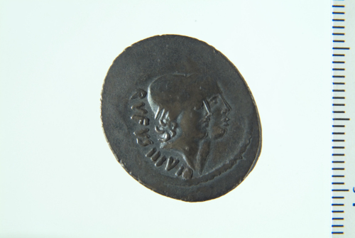 Teste accollate dei Dioscuri con pilei laureati a d.; contorno perlinato